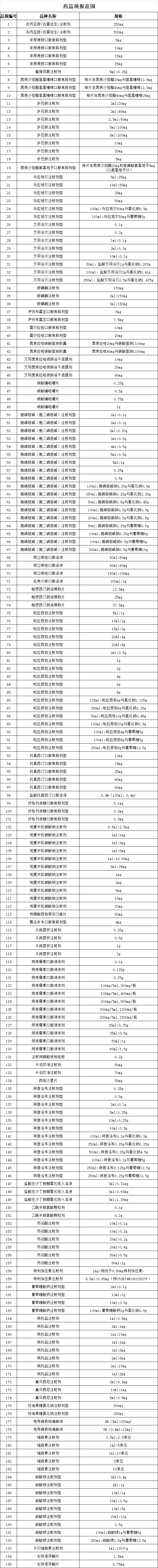 公布的藥品填報(bào)范圍與日前的網(wǎng)傳目錄品種清單一致,共納入了195個(gè)品規(guī),涉及到44個(gè)品種。